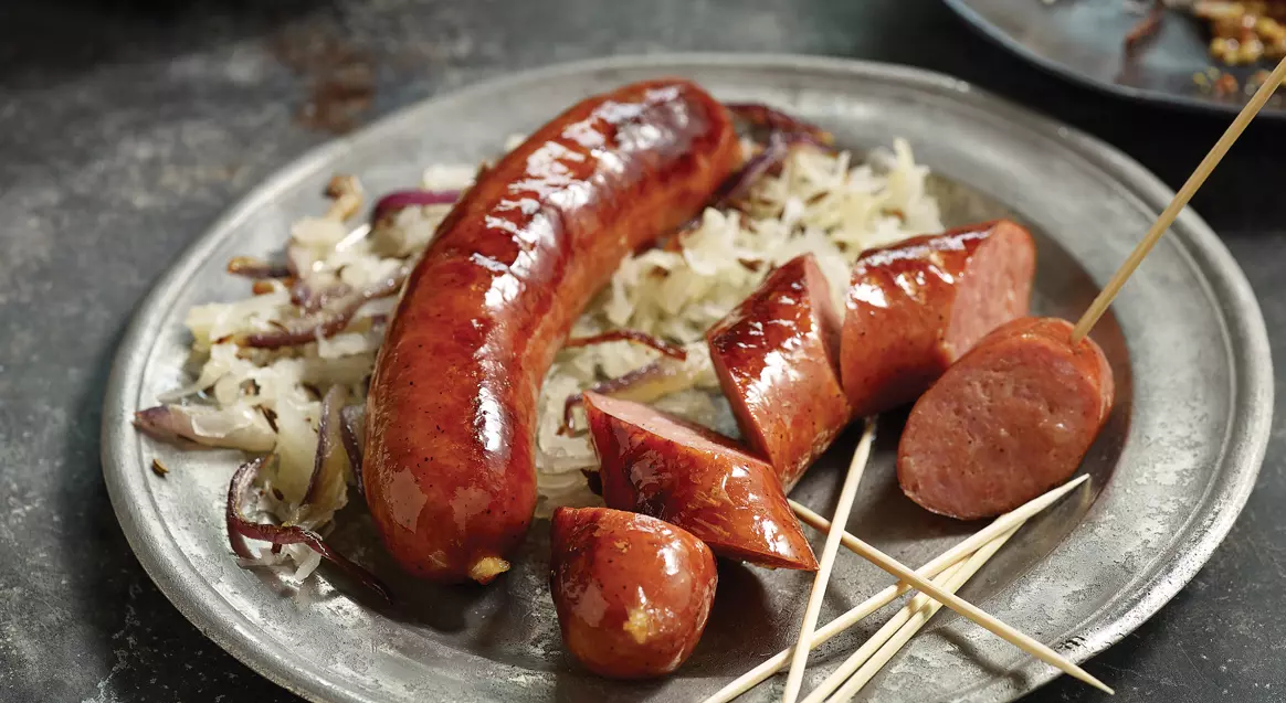 These traditional smoked Kielbasa sausages are packed with flavor and wrapped in a snappy natural casing. Made the old-fashioned way with premium ground pork and beef, Omaha Steaks Kielbasa Sausages are great at a barbeque or in your favorite recipe. They're precooked to perfection and ready to grill, broil or heat and serve.