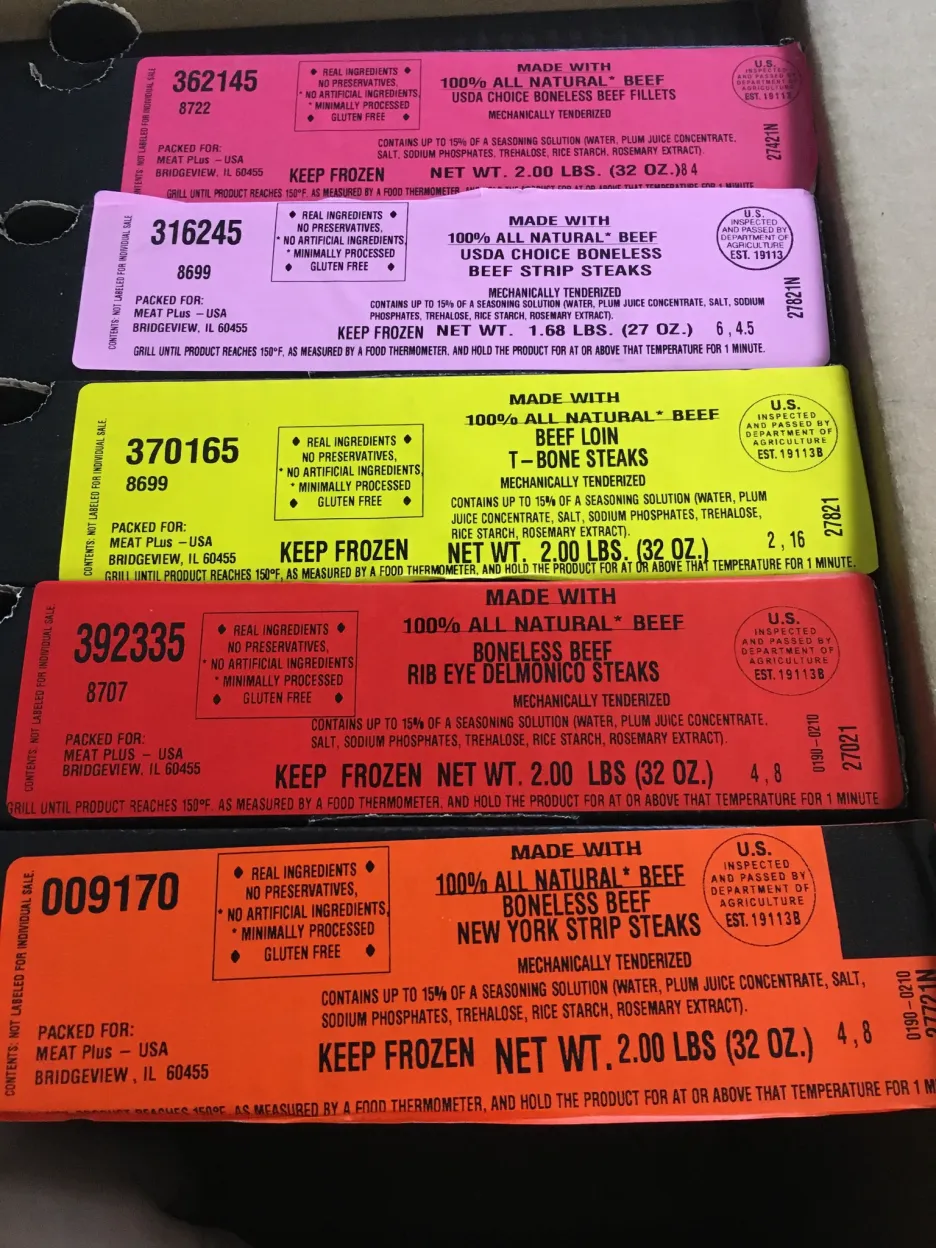 12-month freshness guarantee. Individually wrapped USDA choice meat, vacuum sealed and shipped in dry ice